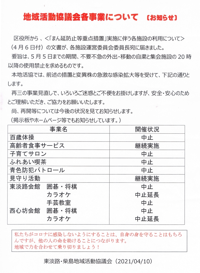 地域活動協議会各事業について(お知らせ)